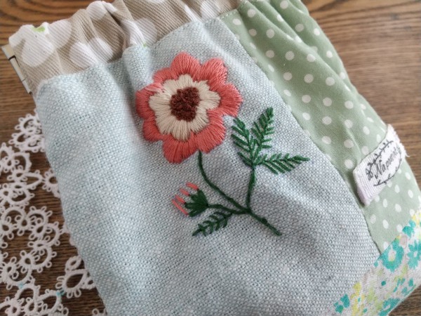 | バネ口ポーチです。 刺繍の練習をした時に刺したお花を使いたくて作りました。 布合わせは悩みましたが、楽しかったです。 完成品を見たら、刺繍やタグが思っていた位置より上に来てました。 なかなか難しいですね。 バネ口が小さく底に手が届かないので、もう少し浅く作れば良かったかな。 |