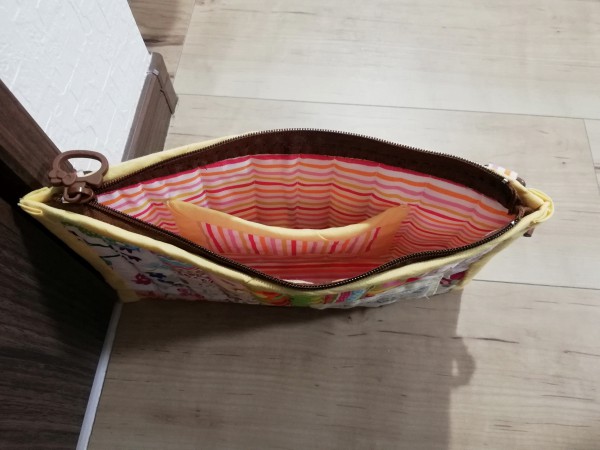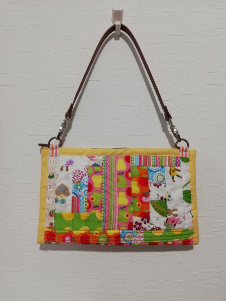 ログキャビンで作ったお財布bagです。紐を長いものに変えると斜めがけbagになります。