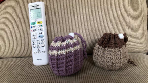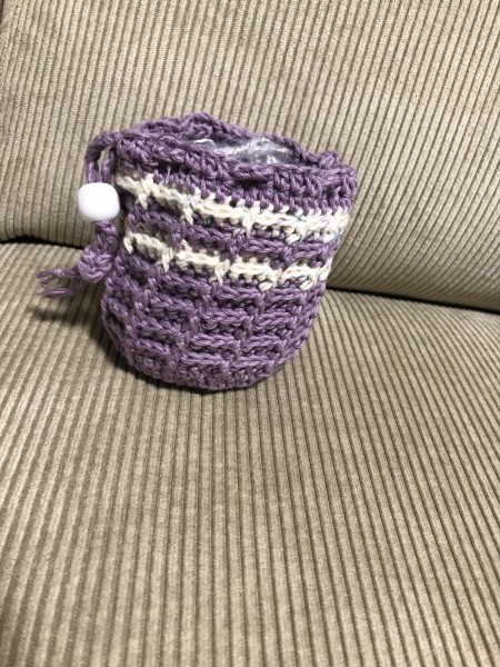 余った紫コットン糸で。