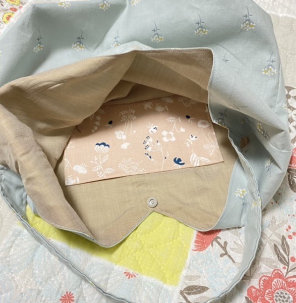 Ozachan channelさんのYouTube動画を参考にして「可愛い肩掛けバッグ」を作りました。センターの切り込みの深さを少し調整。ちょっとしたエコバッグになりそうです。