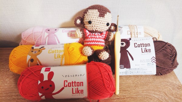 使用糸 CottoLike(コーラルレッド、イエロー、ピンク、ブラウン、ベージュ)