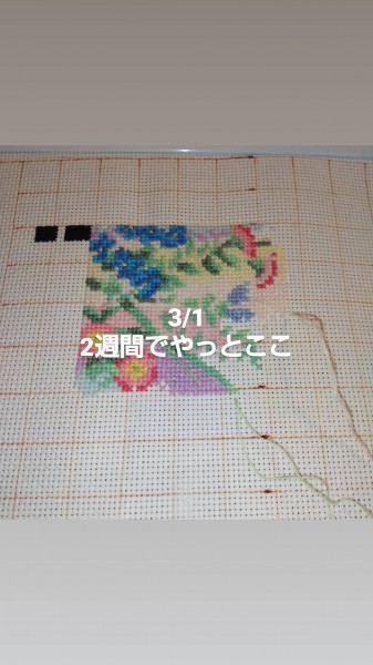 春休みで余り進められないかなと思いましたが、娘もクロスステッチデビューしたので、一緒にチクチク楽しめました。