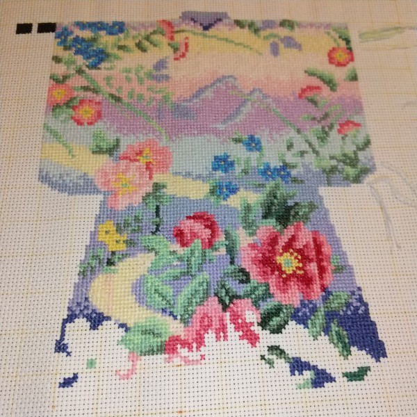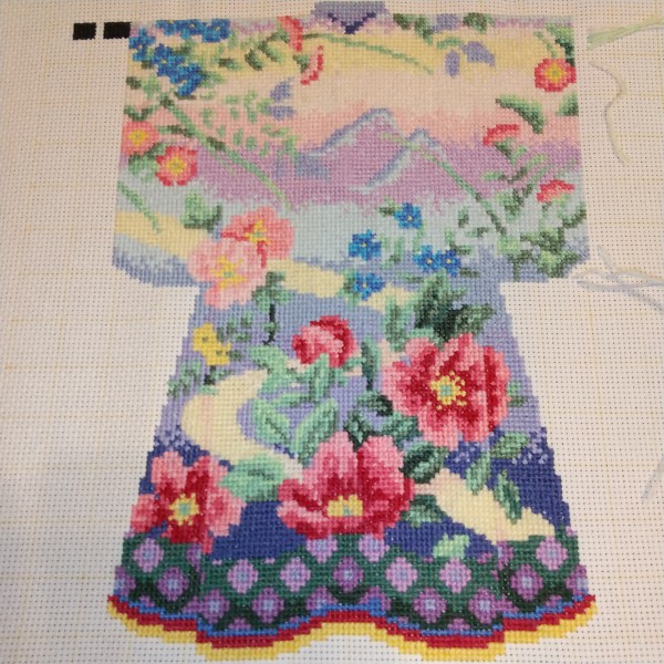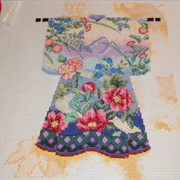 もう1つは着物のクロスステッチとは全く関係ありませんが、小2の娘が春休みからチクチク刺していた作品です。