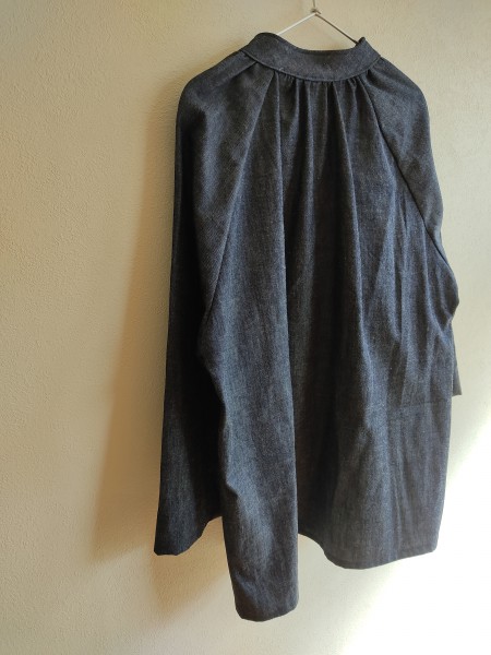 ラグラン袖のプルオーバー、リネンコットンデニムで作りました。スリーシーズン重宝しそうな一着になりました。