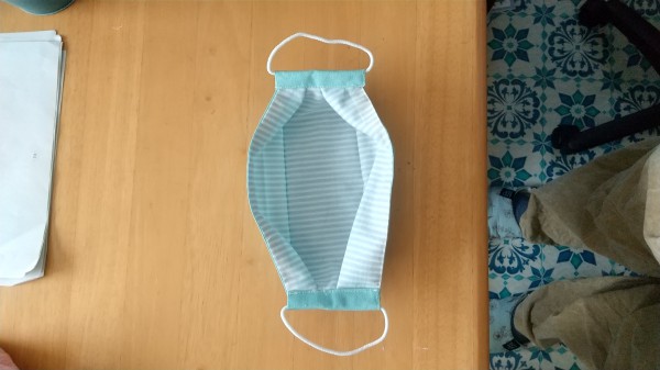 いつもは立体マスクを作ってましたが、旦那が顎までかかるやつ作ってほしいなっていうことで初の箱型。
