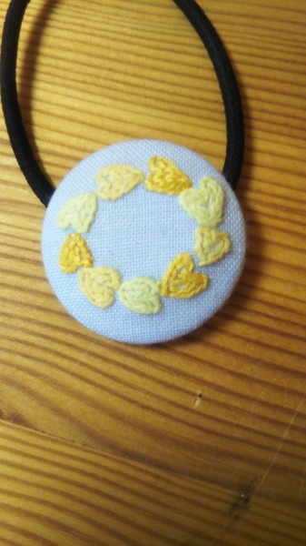 やっぱりサテンステッチが難しい。図案写し丁寧にしないとなー。