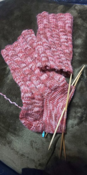 編むのはかかとから爪先までなので、なんかハードル低い感じがする。