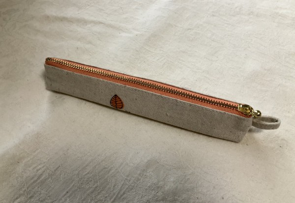 ペンが3本くらいしか入らない小さなペンケースです。バッグに入れて持ち歩くのに良いかな?綿キャンバス地に布用インクとピグマペンで手描きしてます。