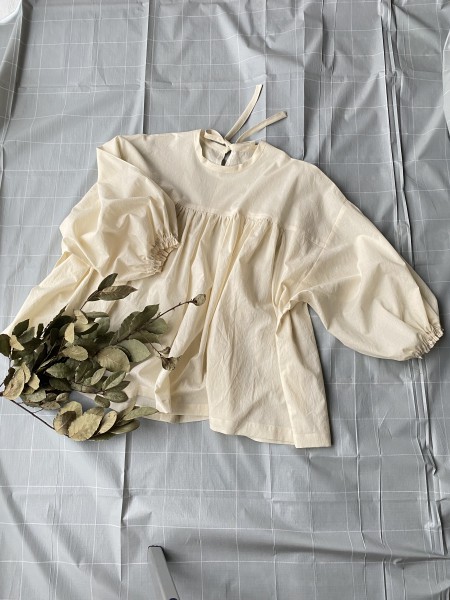胸元でギャザーをたっぷりとってふんわりするようになってます。