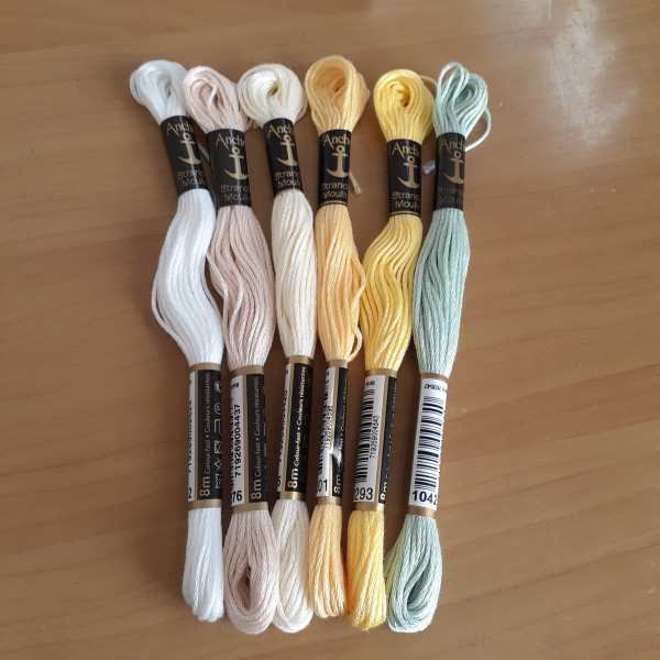 Anchor25 白(2):薄ベージュ(275) ベージュ(276): イエロー(301) グリーン(1042) キキ(293) |