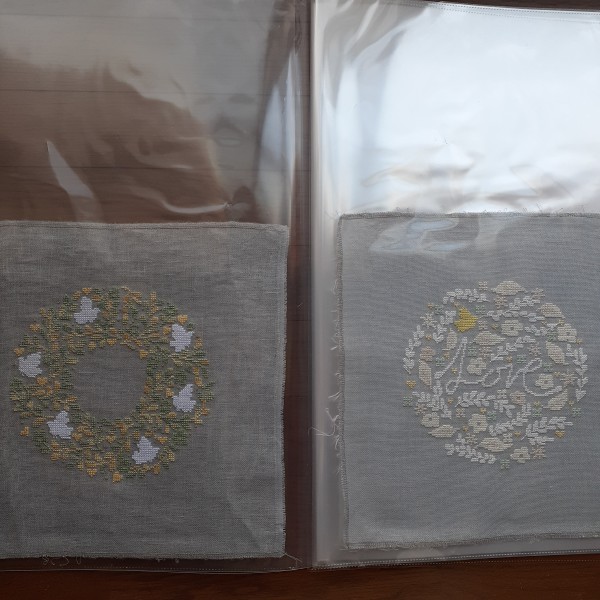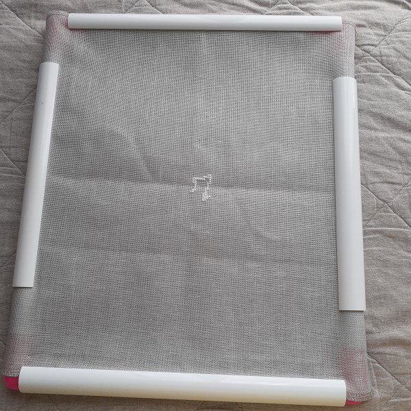 麻布は糊か付いてパリっとしていて、前回のリース柄の時は丸い枠では回りの布がシワになり、きになってたんで、額の刺繍枠を買いました!