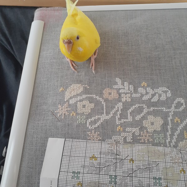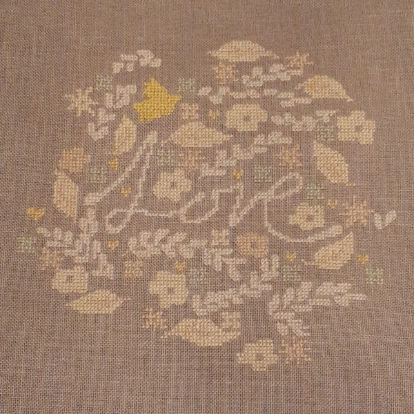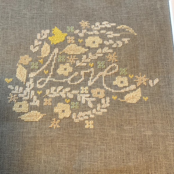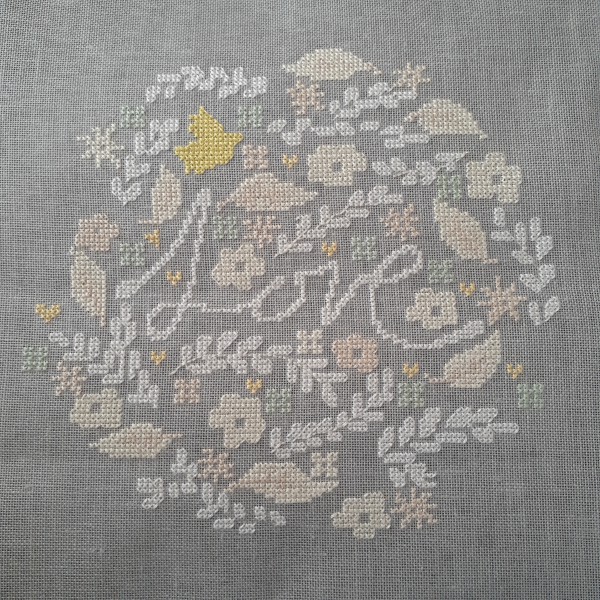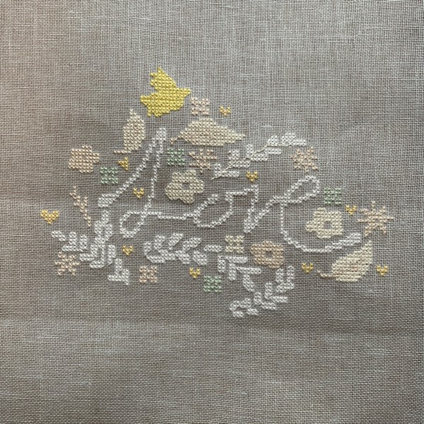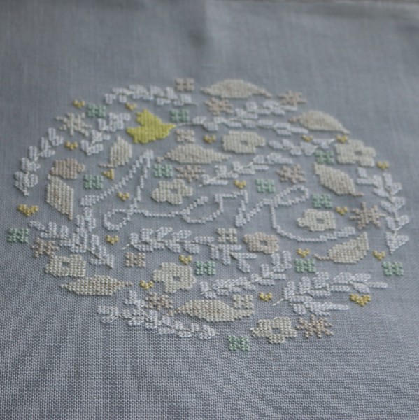 | Dmcのフリーチャートの鳥の図案が可愛くて、アンカーの単色刺繍糸でクロスステッチしました | |