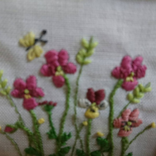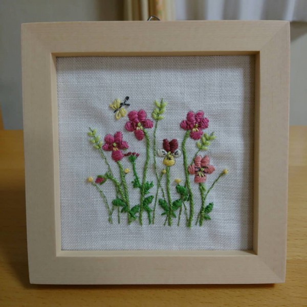 初めて刺繍家の青木和子先生のキットで お花の刺繍してみました。可憐な可愛らしい お花が出来たので