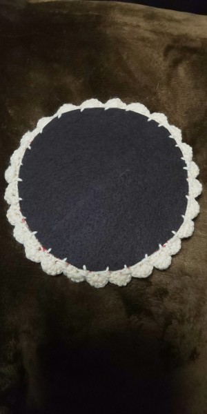 波打ってたのを裏にフェルトを貼って平らくして、縁のスカラップでごまかしてしまいました。