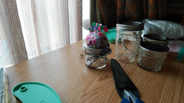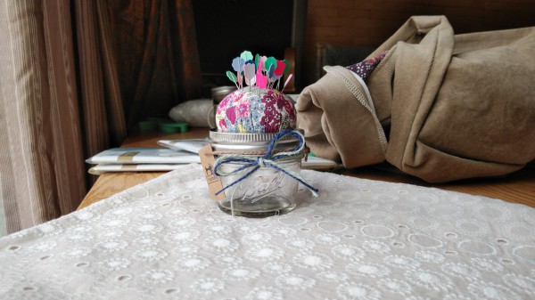 メイソンジャーのピンクッション購入しようと思ったけど…高かったカラ…自分で作ってみました。制作時間15分もあればOKでした。