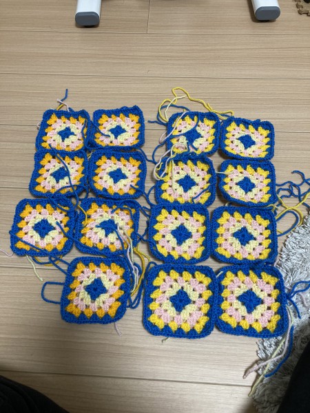 モチーフをつなぎ合わせているところ。