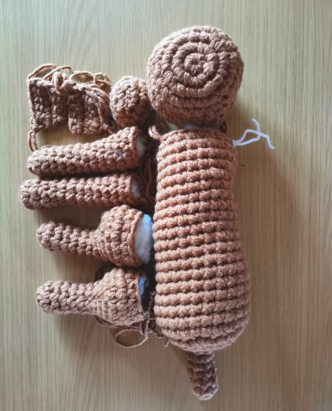 パーツをつなぎ合わせ 色違いで本体2体編めました。