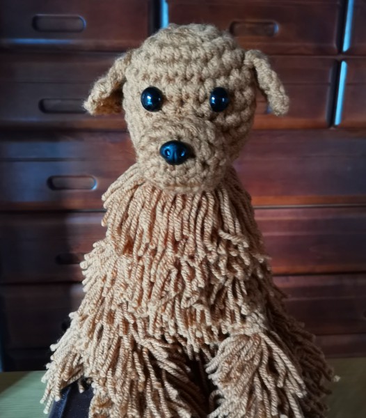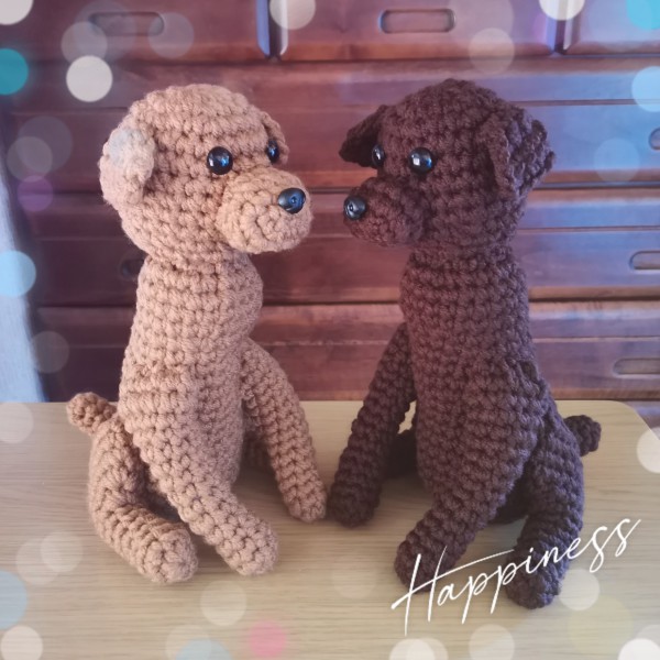 | 娘が飼っているトイプードルそっくりなあみぐるみをつくりました。 眞道 美恵子さんの「抱っこしたくなるあみぐるみワンコ」より 高さが35cmほどあり 本当に抱っこしたくなります。 今回初めての植毛にチャレンジしましたが 何とか形になりとても勉強にもなりました。 もう1体は時間が出来たらまた続きを作りたいと思います。 |