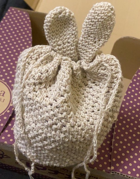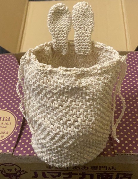 | ハマナカさん公式のキットで、「うさぎさんの2玉巾着」を編んでみました キット付属の毛糸は編みづらかったため、パンドラハウスで手に入れたファインコットン色番2を使用しました 合計1.5玉ほどで編めました ファインコットンが元々少し固めの毛糸で、紐にもその毛糸を使用したからか、開け閉めが若干やりづらくなってしまいました…… |