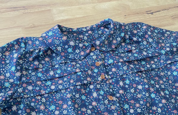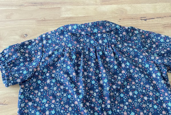 | 海外竜也さんの「一枚で決まる、大人服」より“ボーダータックのブラウス半袖ver.”を作りました。横向きのタックが胸元に3本入って、肩と背中にギャザー、袖口にはゴム入りという、ちょっとした手間で個性が出る、海外先生らしい1着になりました。難しいところもあったけど、縫っていて楽しかったです♪ | |