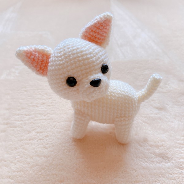 ちわわんこの赤ちゃんをイメージして編んでみました。ちょっとおどおど感が出てるといいのですが、笑