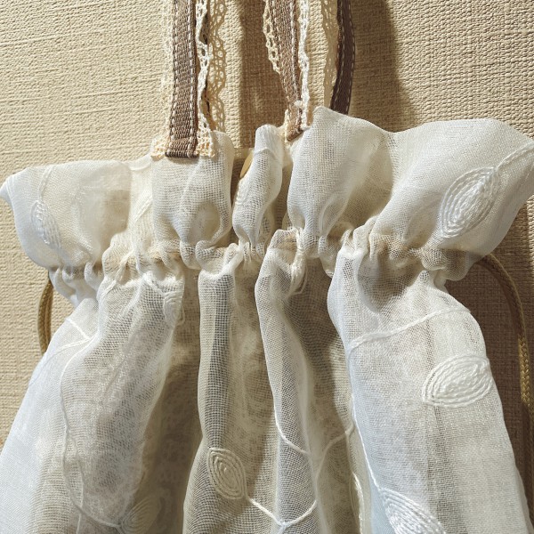 カラーボックスにつけるカーテンと手ぬぐいを本体として使いました。すべて100均で材料は購入しました。製作費は1つあたり500円弱です。中の袋は取り外しができます。