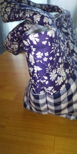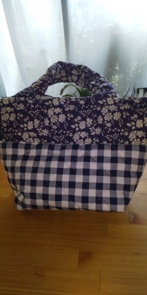 残っていたチェックのキルティングとカペルのキルティングを併せてバックを作りました。内側にはポケットをつけました。