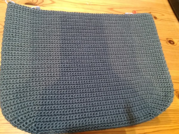 | ショルダーか斜めがけのバッグです。ひもは結んでありますが、後で縫い付けて固定するかも。 1本取りでドイリーを編み、後ろ側をまつりつけて蓋がわりにしました。 中ははぎれでポケットを作り、マグネットボタンを付けました。 |