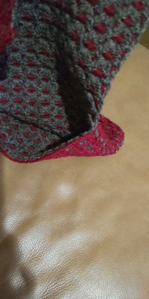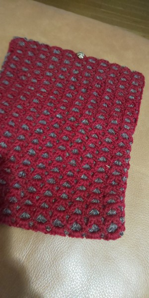 リバーシブルクロッシェ2の編みかたに初めて挑戦したものです。四角に編んで三つ折りするだけの簡単な物です。