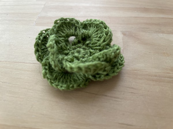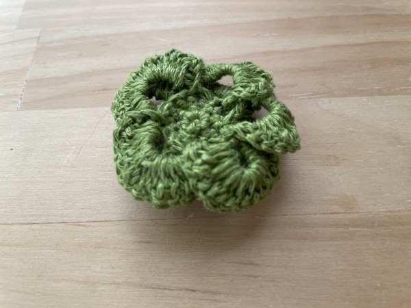 立体的なお花です。オリジナルドイリーと同じ糸で編みました。もう少し硬い後なら型崩れしにくいかな?