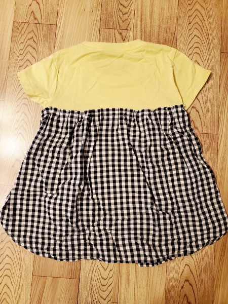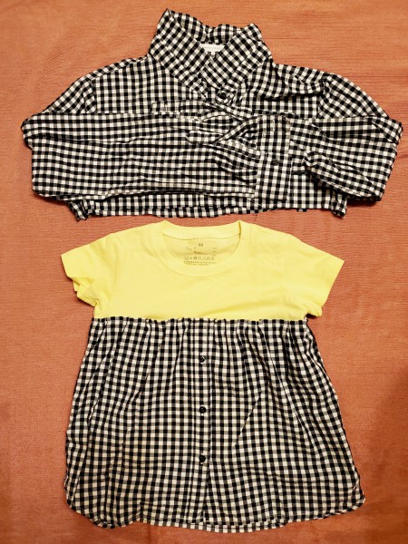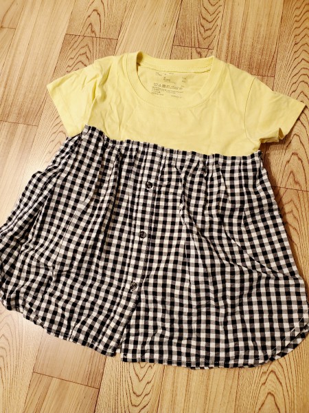 私が着なくなったギンガムチェックのシャツを切って無印良品のTシャムにくっ付けました。