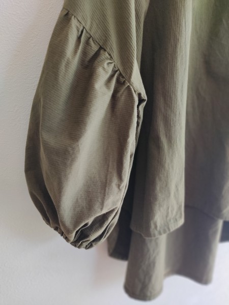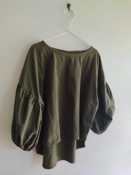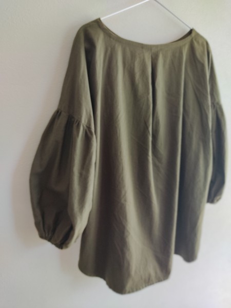 ボリューム袖のトップスをハリ感のあるコットン(鎌倉スワニーオンライン)で作りました。これ一枚で着れてお尻も隠れるのでいい感じです!「今日の大人服」を参考にしています。