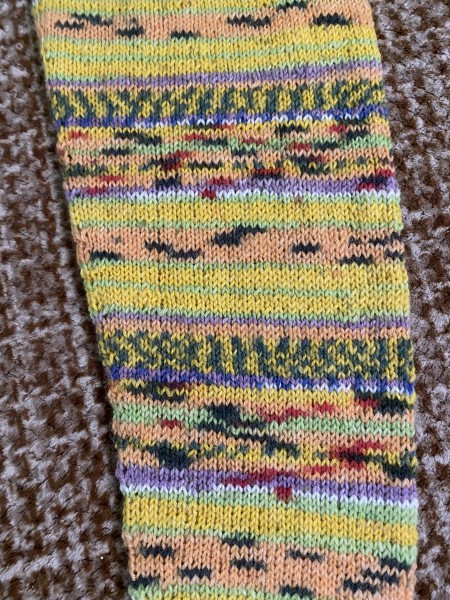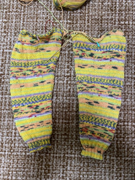 ソックスの時は必ずする柄合わせはしなかったのですが、浴衣を作るときにする柄合わせのように交互に模様が飛んでいて、それはそれで面白い効果が出ました。