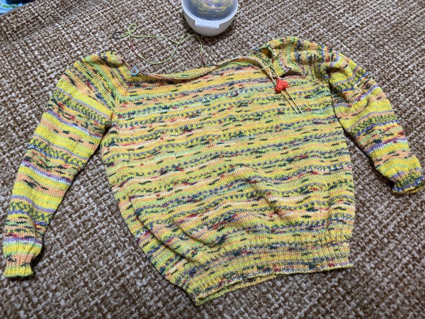 身頃はまだ完成していませんが、糸口の都合で先に袖に取りかかりました。