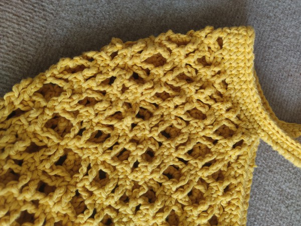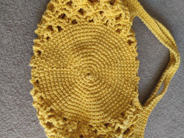ダイソーのコットンヤーン極太でネットバッグを作成、底をなんとなく円形にあとはまっすぐ二重のネットにしてみました。かなりの大容量なので以外と使えそうです(。•̀ᴗ-)✧