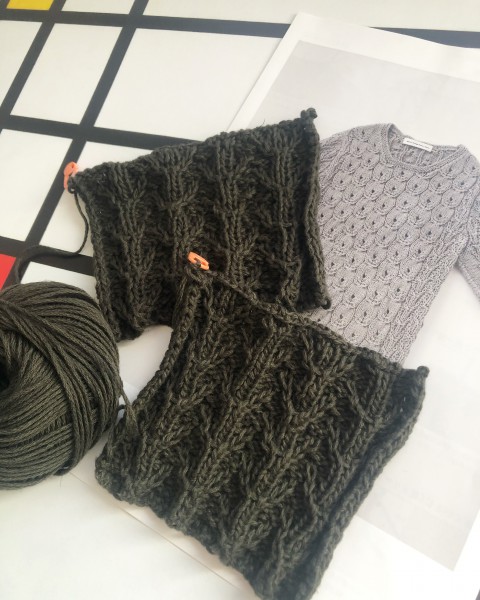 ずっとの模様編みも大変だと思いますし、模様編みしながらの襟ぐりや袖ぐりの減らし目なんかも難しそうです。