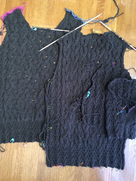 あとは、袖をつけて衿ぐりを拾って編むだけ!!