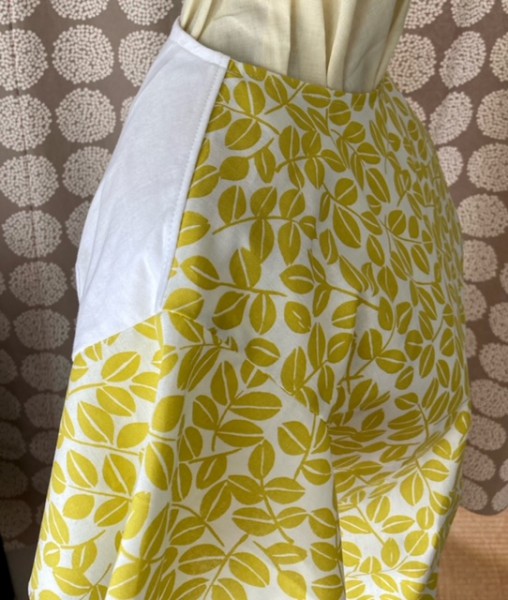 ダイソーさんのマリメッコ風木綿生地。長さ50cmでしたので、後ろは天竺の生地で。