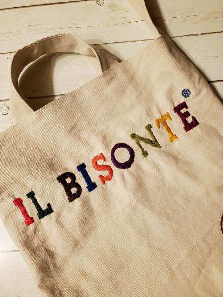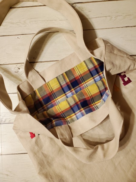 同じロゴを刺繍して同じサイズのトートバッグを作りました。