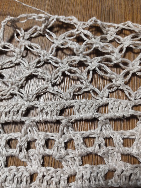 「ハンドメイドクロッシェ」より。買い置きしていたリネンの糸を使用します。多分足りるはず。