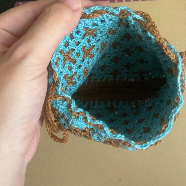 母のリクエストで、以前編んだ柄で巾着を作りました