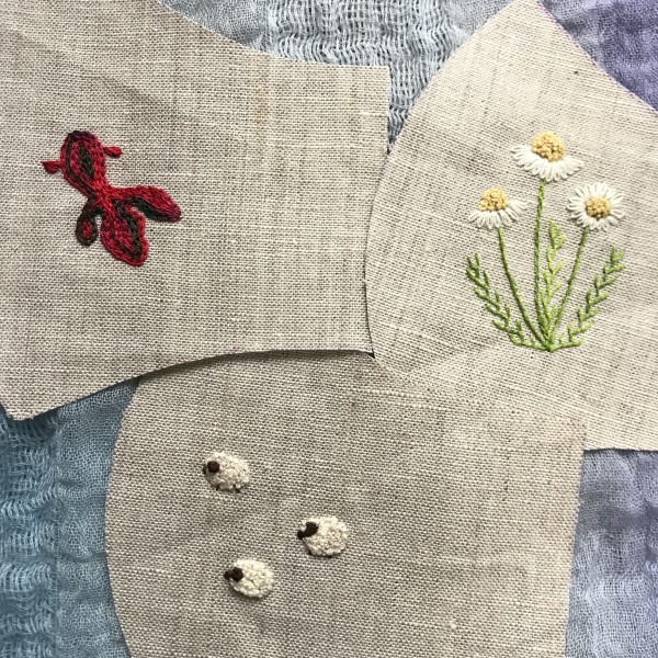 ちいさな刺繍、リネン立体マスク予備軍です。