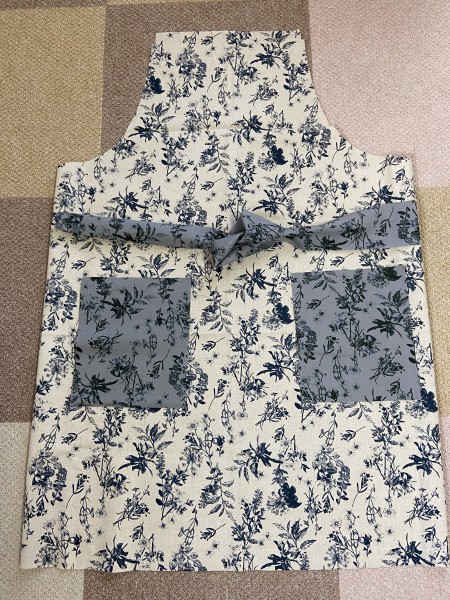 かわいいインテリアファブリックを見つけたので色違いのエプロンを作ってみました。妹へのプレゼントです。