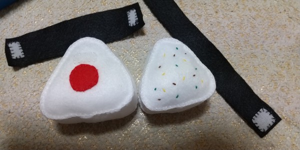 おにぎりののりは、マジックテープ付きなので取り外し可能です。