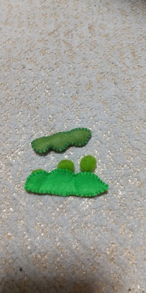 枝豆の1つだけは、豆を羊毛フェルトで作りました。