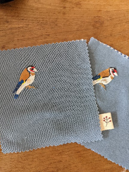 2羽目も指し終わったので、タグに刺繍しました。前回タグが小さすぎて、最後のミシン作業が大変だったので、1cm大きく変更。