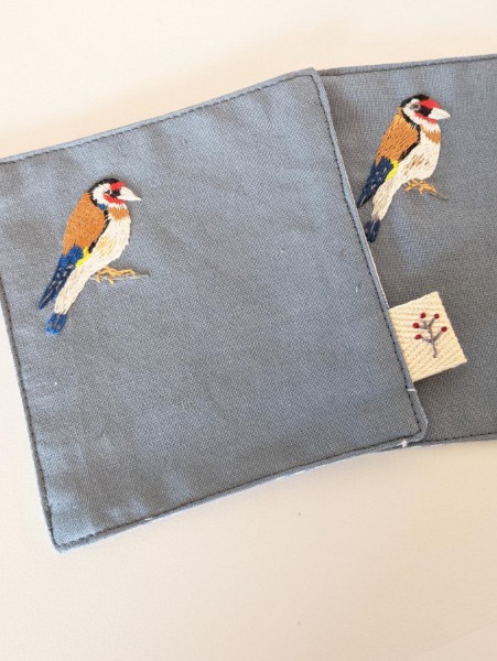 | 第二弾☆野鳥のコースター。 タグも鳥の色に合わせて、赤い実にしてみました。 |
