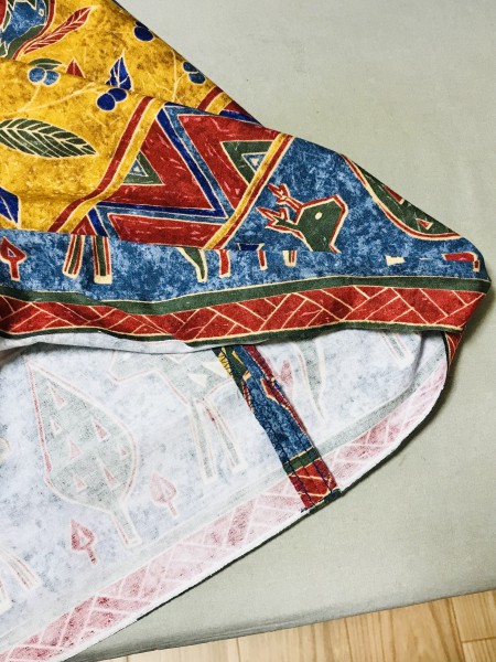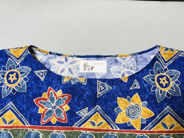 亡き母の蔵出し布から、アジアンテイストのプリント布が出てきたので、簡単なワンピースにしました。