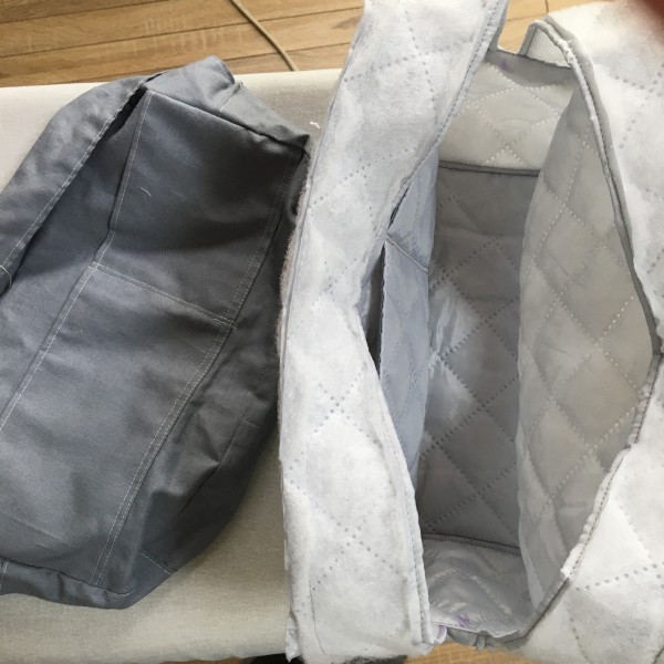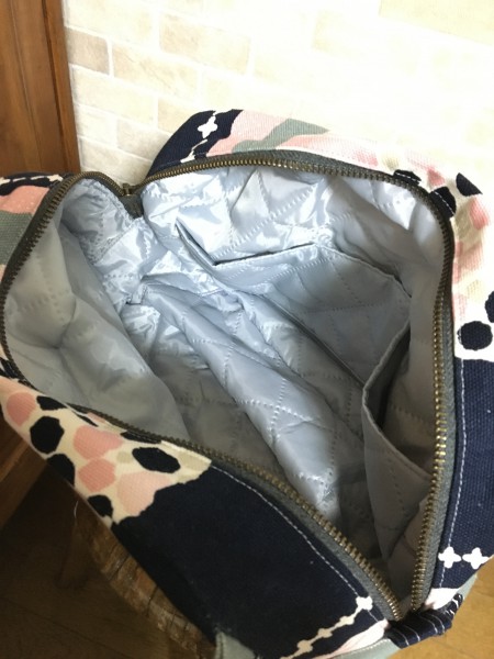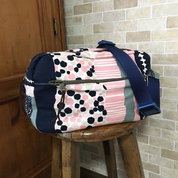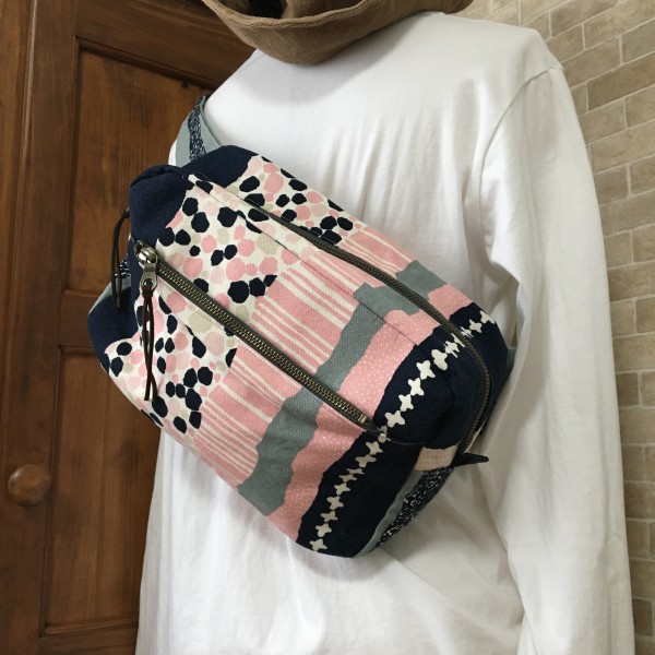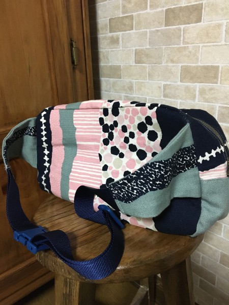 余り布でボディバッグを作りました。裏を最初はコットンで作ったらちょっと形が整わず心もとないので、キルティング地に変えました。