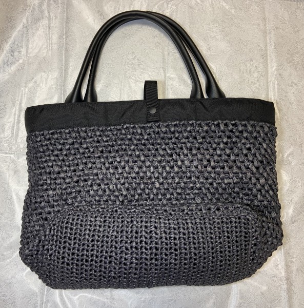 | 無印良品で買ったトートバッグに合わせて、和紙のアミアンワイドでバッグを編みました。無印のバッグを分解してから、ポケットにファスナーをつけ、裏返しにしてからそれをインナーにして、持ち手をつけました。軽くて機能的なバッグになったと思います。撥水加工になっているので、濡れたペットボトルやドリンクボトルも大丈夫そうです。妹へのプレゼントです。 | |